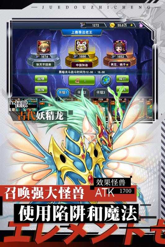 实时挑战,召唤怪兽来一场真实的PVP战斗吧,直面真实玩家,拼卡组,斗牌技,只有一个人能获得胜利,我才是真正的决斗王。