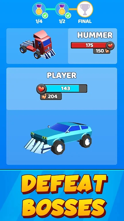 通过战斗和摧毁汽车来完成各种任务和挑战。同时你将体验到极速驾驶和惊险碰撞的刺激感受。
