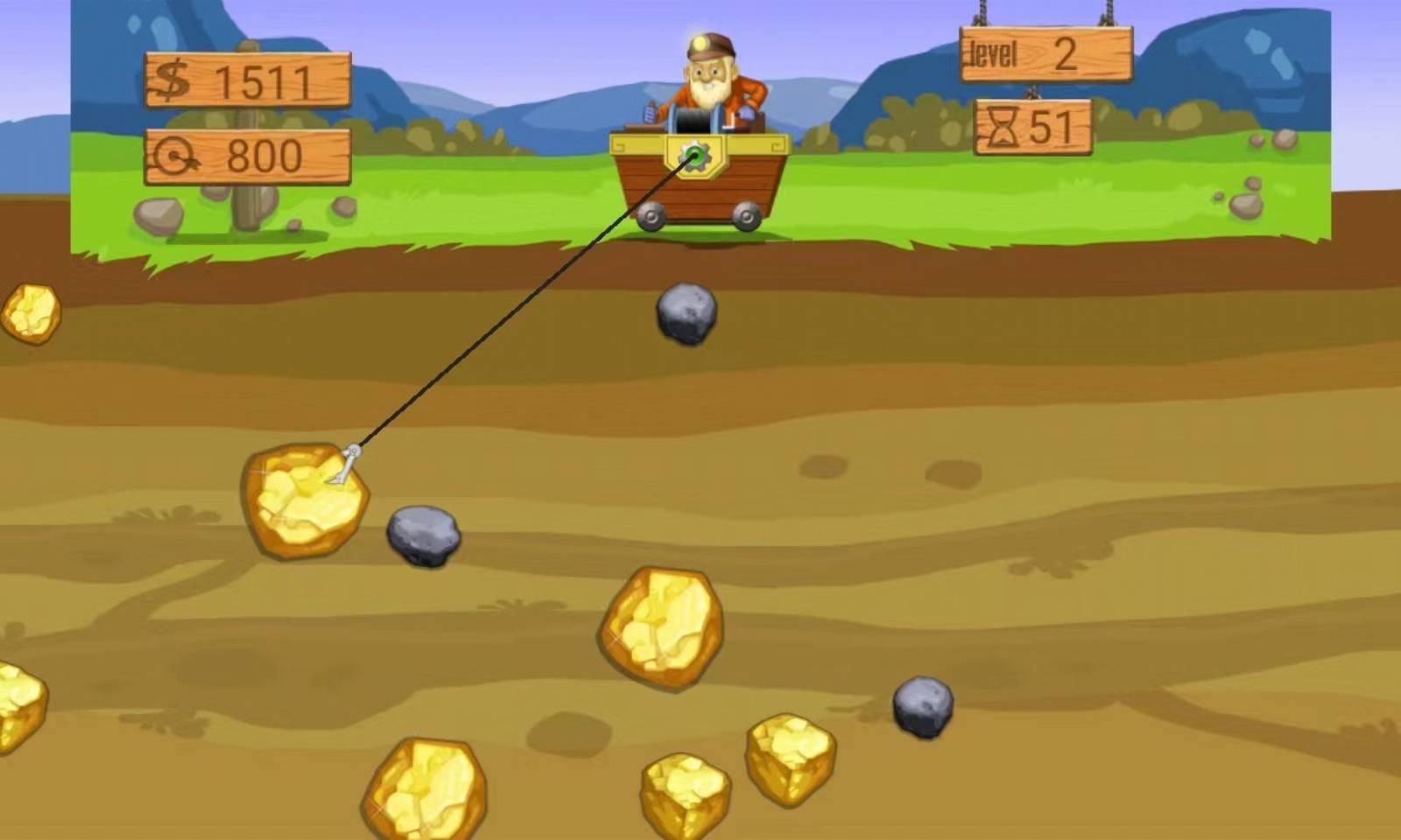 1、玩家可以轻松地通过触屏或鼠标控制角色,完成挖掘黄金任务。