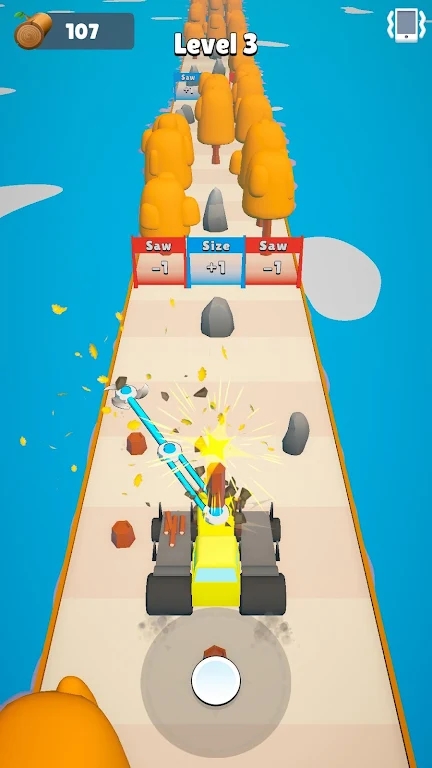 伐木机跑酷是一款刺激有趣的游戏,玩家在游戏中扮演一名勇敢的伐木机司机。玩家驾驶伐木机穿越各种障碍物,同时尽量收集道具和奖励。他们还需注意路上的陷阱和掉落的树枝,这些都可能让伐木机翻倒或暂时失去控制。使伐木机速度更快,或者收集护盾道具,使伐木机免受伤害一段时间,喜欢的小伙伴来试试看吧。