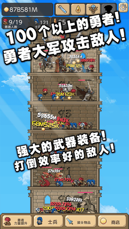 1、勇者之塔有无尽的层数,玩家全部打穿是不可能的