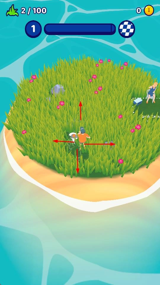 1、游戏采用拖拽式操作,控制割草机清理场地,收集金币和其他物品。