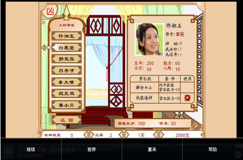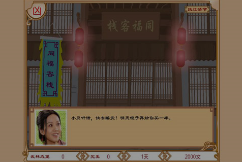 6、游戏中玩家需要经营同福客栈,同时也要顾及任务的成长和提升。期间时间为100个游戏天,100天之后需要与BOSS对决。