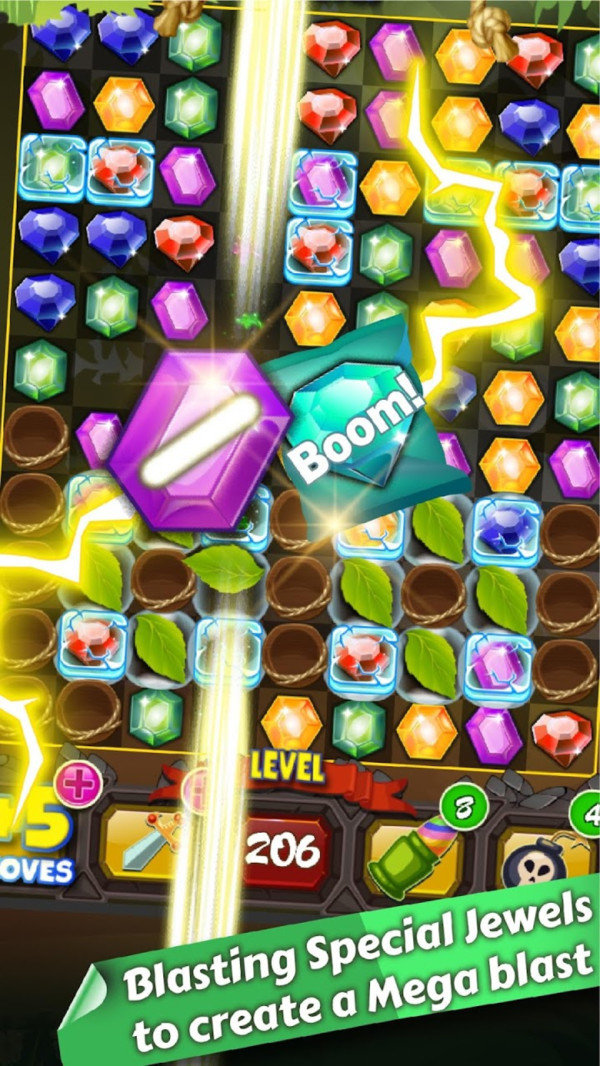 珠宝丛林爆炸是一款非常好玩有趣的休闲游戏我们在这里的目的就是将所有的宝石全部完成消除,玩家需要将关卡中的宝石进行消除,喜欢玩的小伙伴千万不要错过了,游戏和消消乐差不多,快来下载体验吧。