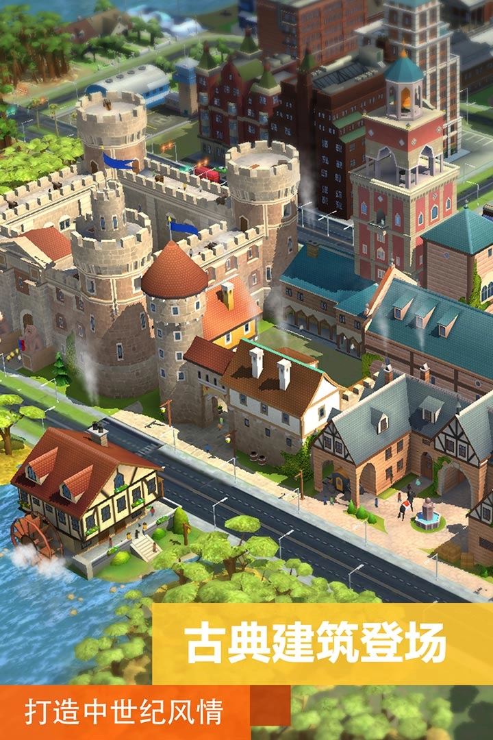 游戏中最典型的玩法就是建造城市。玩家可以建造各种现实生活中可以建造的建筑。打造居民区,让人口流入,建造医院,提升人们生活水平。建造各种娱乐设施,让人口充实起来。