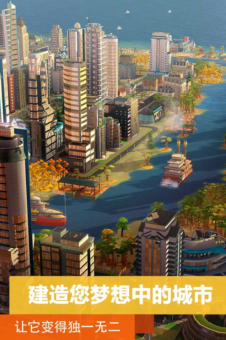 2、水上型:自由规划道路,建造个性都市是游戏的一大亮点。不过,单纯由道路和建筑组成的城市是不是略嫌单调呢?其实,游戏里的可造内容并不只有楼宇和地标,还有大量的公园、休闲娱乐类设施。除此以外,玩家还能改造游戏中的自然风光,为城市开辟河道,而如果你在城市里打造足够的水体,把自己的城市变成一个模拟的水上威尼斯也不是梦呢!这次,就让我们来看看游戏中独特的景色建筑。