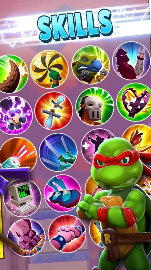 3、用特殊的攻击和强大的技能为海龟装扮,以征服来自各个宇宙的成群的步兵忍者。