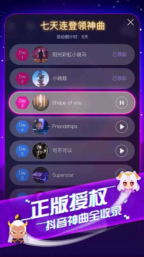1、梦幻般的游戏画面,经典的节奏音乐游戏,感受最震撼游戏体验。