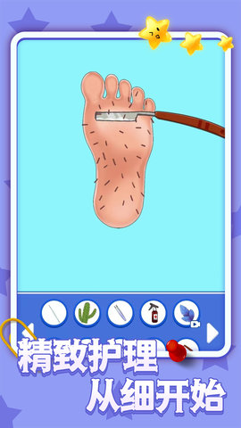 3、精细的操作体验:游戏中的修脚操作考验玩家的手眼协调能力和操作技巧。玩家需要准确地使用工具进行修脚,同时要注意力度和速度的掌控,以达到最佳的修脚效果。