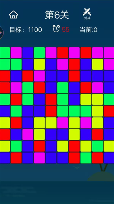 1、有很多不同颜色的方块等着我们去消除,玩家可以尝试去消除它们。