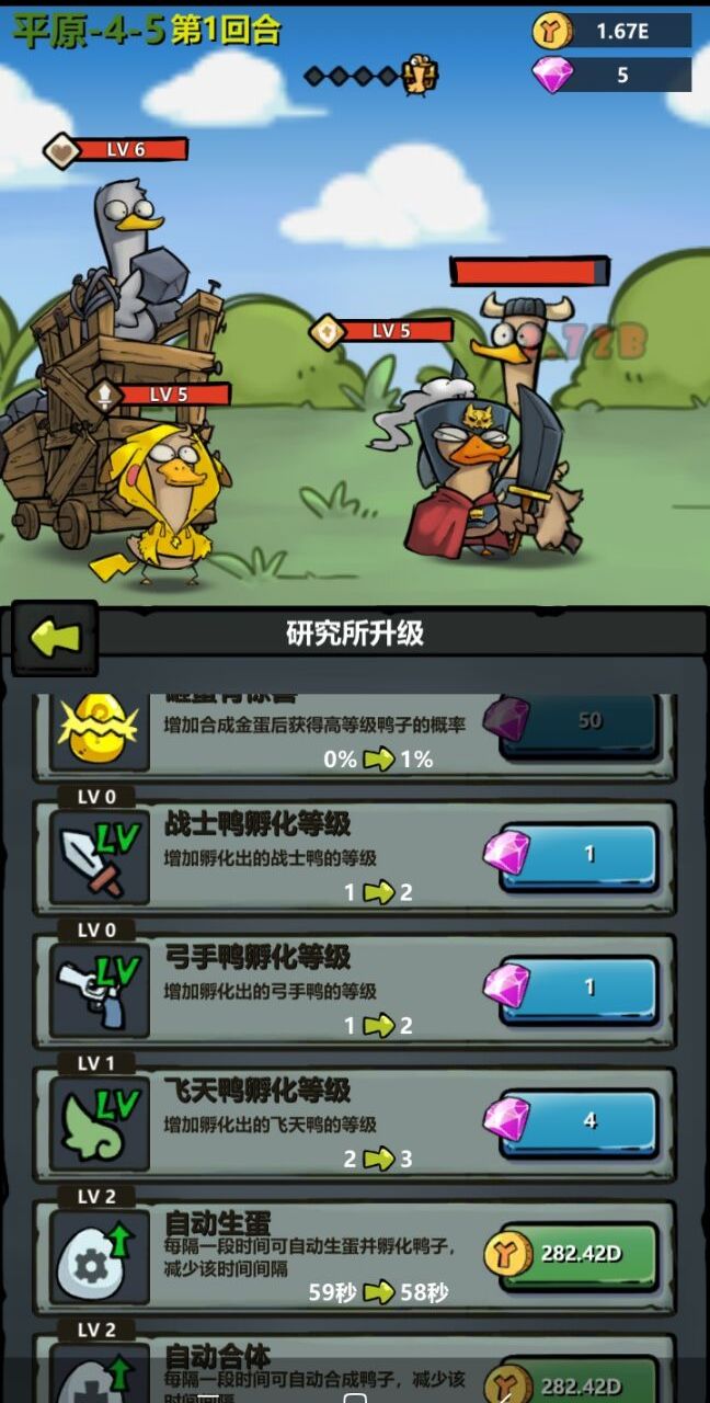 拖动两个相同的鸭子到一起,就能合体成为更高等级的鸭战士!