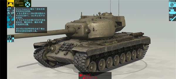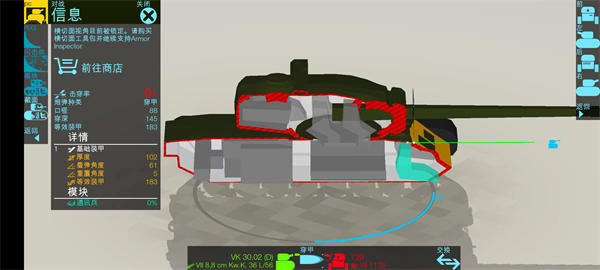 3、而点击透视、等效、撞击、视角,则可以对坦克调整位置,观看具体的数值;