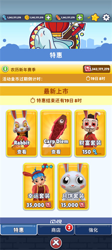 1、地铁跑酷农历新年版本结合兔子的主题,在跑动中有隐藏可爱特效的展现。