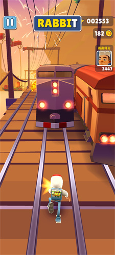 3、背景设定在轨道的追逐上,逃离警卫坚持不懈的追捕,躲开来回穿梭的普通火车。