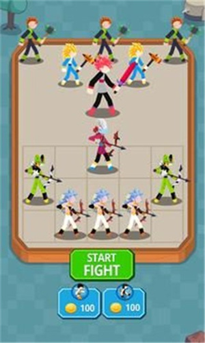2、变换阵容:收集各种火柴人职业,例如战士、法师、射手等,自由选择你喜欢的职业进行游戏,并不断变换阵容,保持游戏的新鲜感。