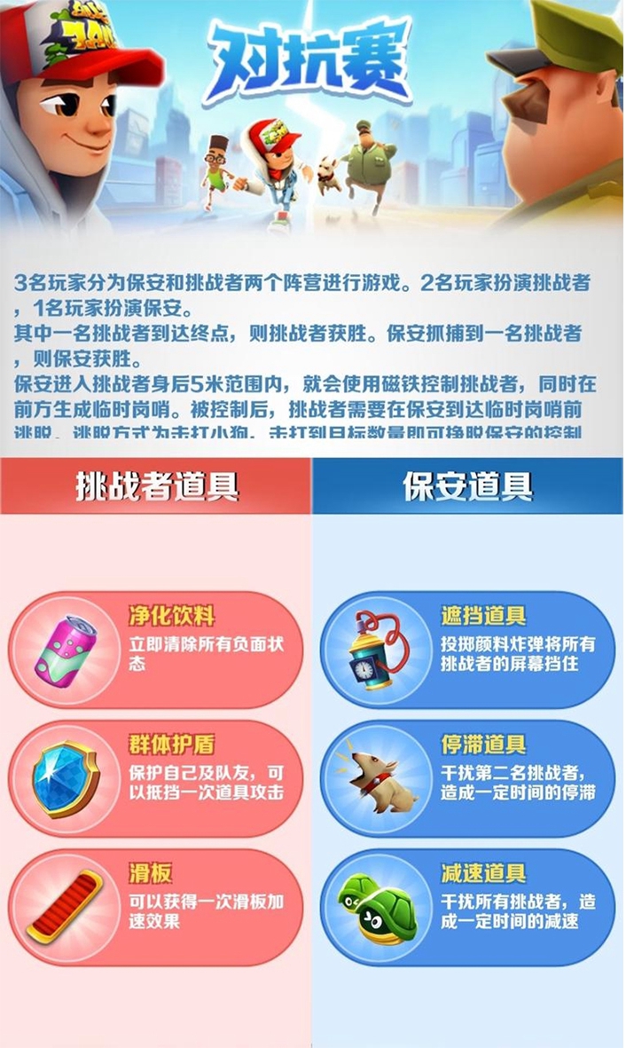 1、冒险穿越各种地铁隧道,闪避列车和障碍物,收集能量和道具。