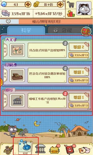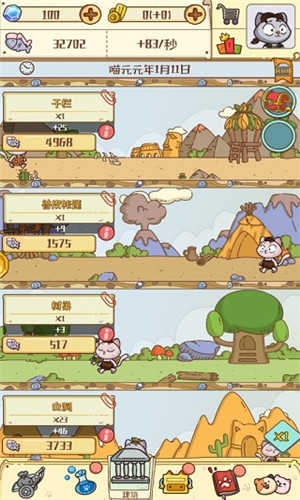 3.玩法很简单,点击购买,投资升级,偶尔抽抽喵喵工作机。