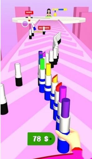 多色口红跑是一款刺激有趣的跑酷游戏,玩家需要控制一个精灵角色躲避障碍物并收集各种多彩的口红,最终达到终点线。玩家需要根据自己的策略和技巧来选择合适的口红颜色来应对不同的游戏场景。并利用它们的特殊能力来突破障碍物或取得额外的分数,喜欢的小伙伴来试试看吧。