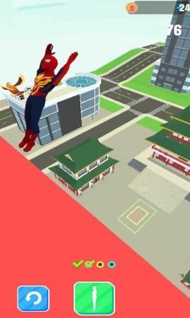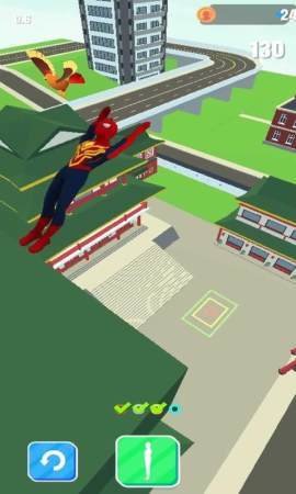 2、点击屏幕可以让蜘蛛侠进行跳跃,长按屏幕可以让蜘蛛侠进行翻转动作。