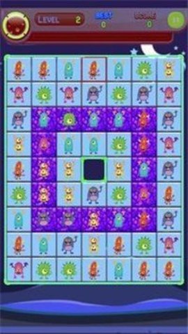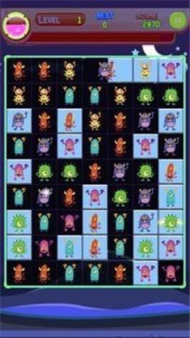 1、点击屏幕上的两个相同的怪物,使它们消失并获得分数。