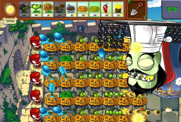 原理:特殊植物这里主要指用来对付秦始皇的植物,操作方法与打机器僵尸相同,当然这些都是你要用阳光买的,不能浪费!
