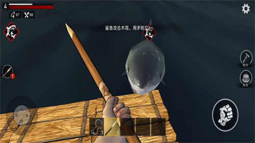 2、让玩家去进行着制作各种武器,去不断进行着捕鱼玩法,能够让玩家就是补充食物。