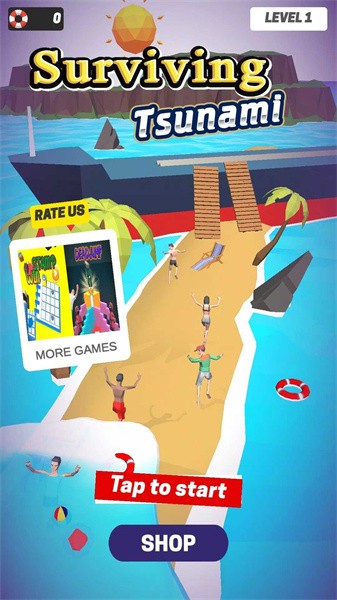 3、玩家需要在游戏中不断移动,躲避障碍物和海啸,到达终点并登上救生艇。