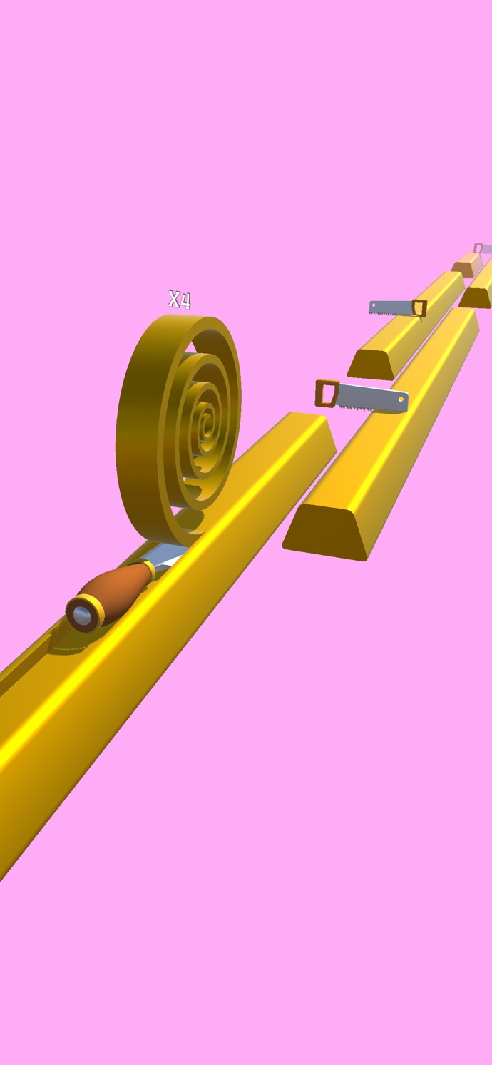 1、控制铲子在木头上飞行,铲起更多的木卷;