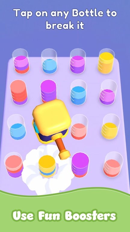 3、解锁隐藏元素:合并不同颜色的液体还可以解锁隐藏的元素,如宝石和星星,让你的游戏更加精彩。