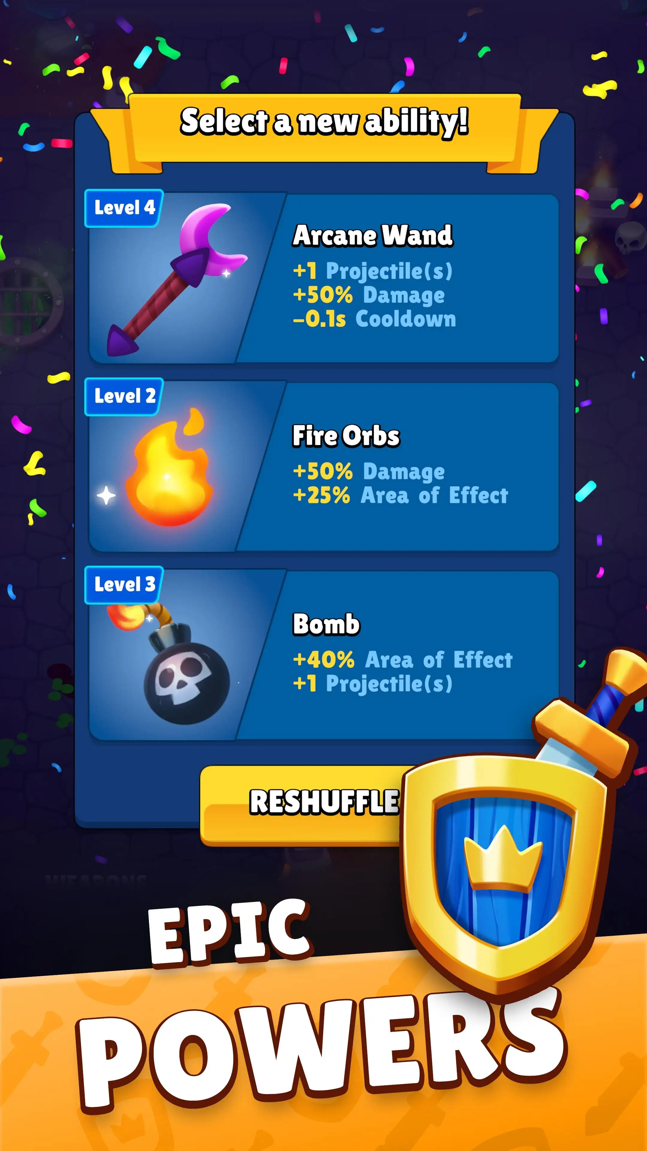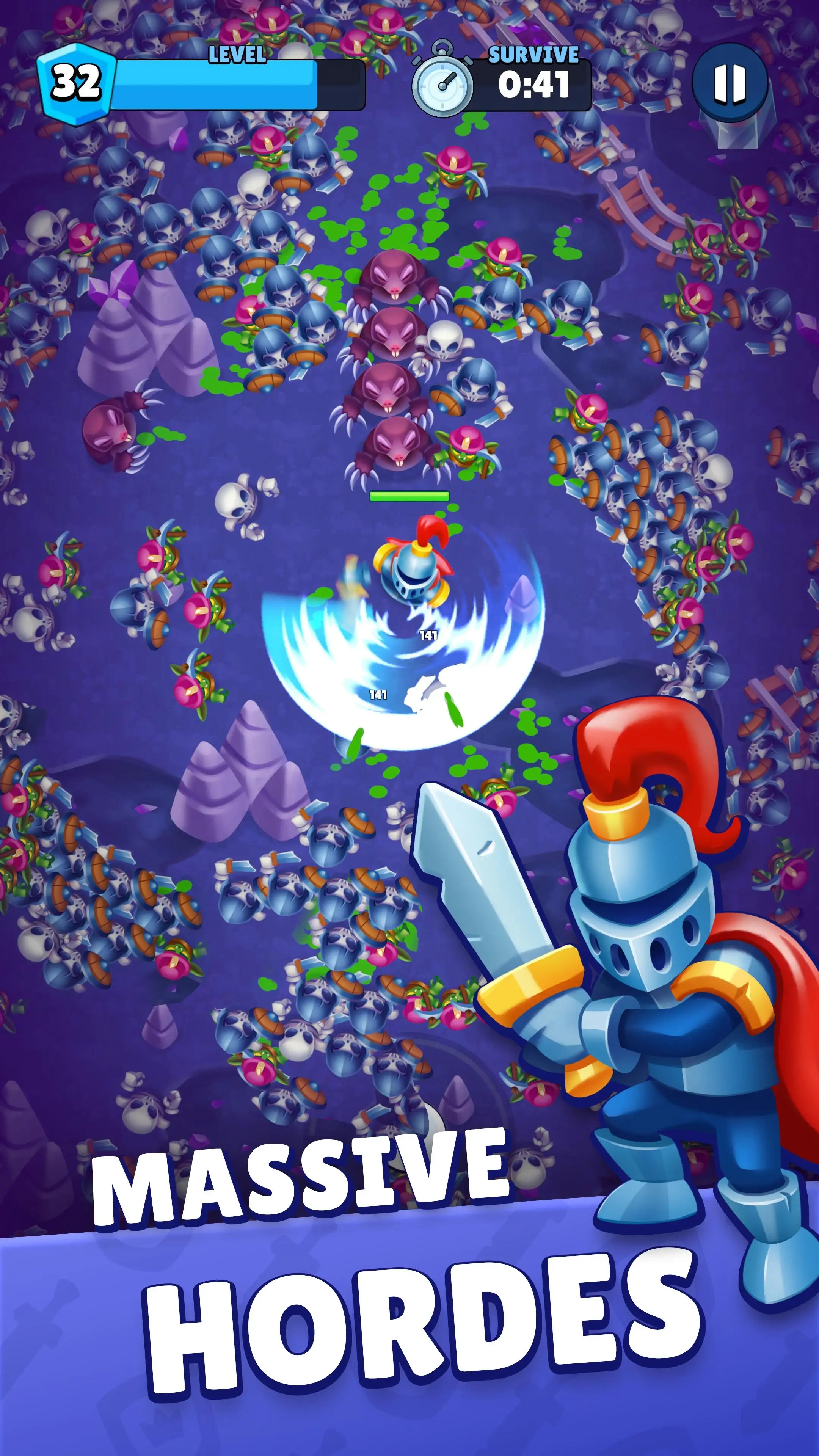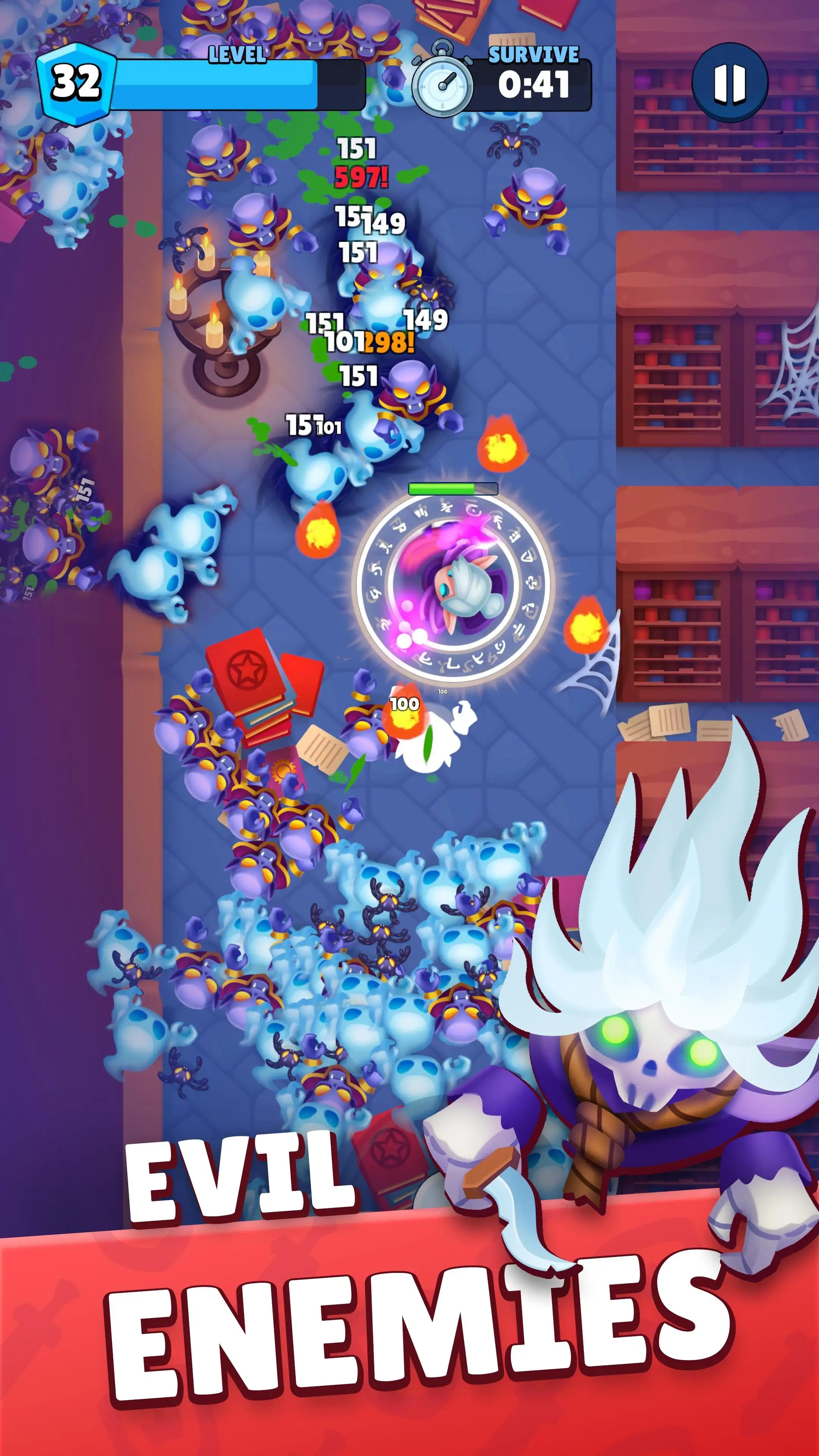 3、进入游戏开始割草挑战,击败敌人升级,获得随机装备和道具,提高你的战斗力,完成更多任务。
