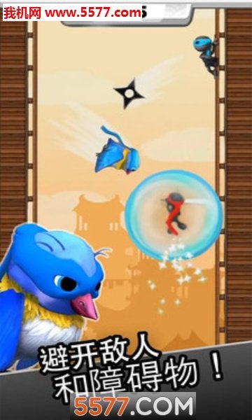 攀爬吧,忍者,爬呀!在这款以忍者为主角的快节奏游戏中,您的目标是尽可能爬到高处,同时还得躲避邪恶的松鼠、俯冲轰炸鸟、敌方忍者、飞镖、炸弹等等!凭借忍者的灵活性,轻松地沿着建筑物的一侧攀爬上去。轻触后,从一面墙跳跃到另一面墙上,在一众敌人中杀出一条血路。连续击中三个匹配的敌人,赢取奖励攻击力提升加速道具。抓取护盾保护自己。当心障碍物和岩礁。一定要活下来!!!