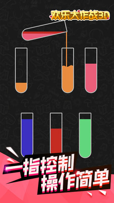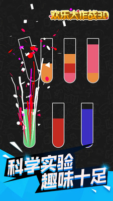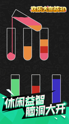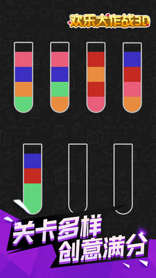 1、欢乐大作战3d并不难,但是很容易上瘾。不同的关卡会有不同的液体供你分类。