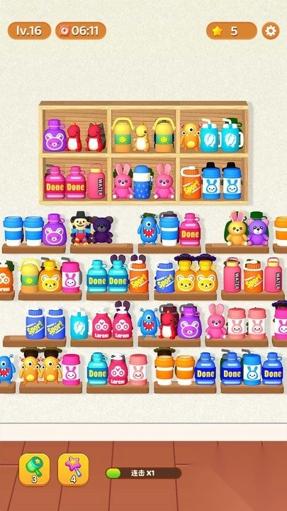 3、进入关卡就可以体验合并所有相同物品的快感,触摸式的点击操作更容易理解。