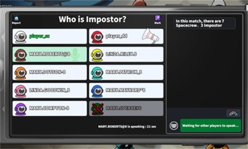 无论是哪一个都会进入到投票功能的界面,在这里玩家们通过各自获得的信息来投票,选出把谁丢出飞船,放飞宇宙。