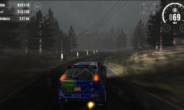 4、值得一提的是,游戏的赛道虽然都是尘尘土土的拉力赛道,但是游戏的天气系统却做得非常有感觉,举个例子,如果你在雨天跑林地的话,千万要注意转向减速和油门控制,不然你就会感受到什么叫做“雨天湿滑,谨慎驾驶”晴天雨天这种天气变化之外,游戏还有白天黑色的时间划分,夜间赛道能见度更低,更需要技巧,当然玩起来也更加刺激!