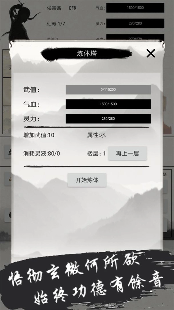 3、冥想可以增加灵液数量,灵液可以在炼体塔中用于炼体;提升武道系统等级,必须在练体塔中同时储存五万灵液才能进入下一等级。