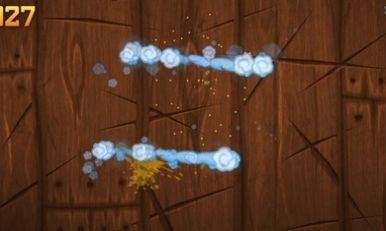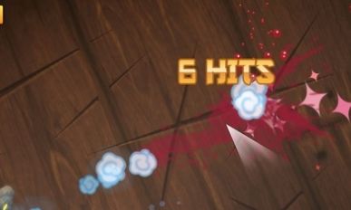 2、不断会有水果和蔬菜将会出现,快速挥动水果刀进行切割,将它们切割成更多小块。