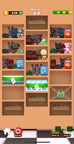 2、突破挑战关卡:游戏内包含大量关卡,每个关卡中的胜利都需要玩家消除三个相同的元素。逐渐加大的挑战让玩家充分体验消除的快感。