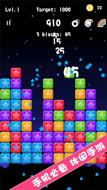 星星消消消一款休闲益智类游戏,玩家需要通过消除相同颜色的星星来获得高分。玩家需要观察并找到至少三个相邻的相同颜色的星星,然后点击它们进行消除。也会被一并消除,从而获得额外的分数,出现更多的星星和障碍物,需要玩家更加灵活地思考和操作,喜欢的小伙伴来试试看吧。