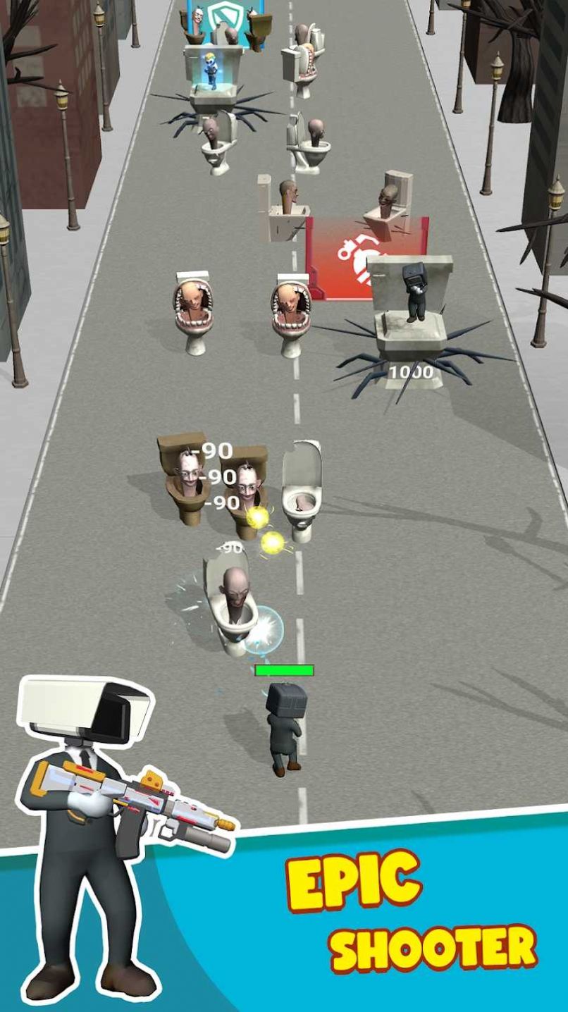 厕所怪物奔跑射手是一款厕所怪物的冒险生存类游戏,玩家可以操控角色,通过强大的火力,尽情消灭不同的怪物,不断前进疯狂的打击敌人,可以解锁多种技能,带来更为震撼的打击体验,其中的玩法以及对决都是充满疯狂特点的,相信是每一个玩家都能十分喜欢其中的精彩对决,记住不要放任何一个厕所怪物哦。