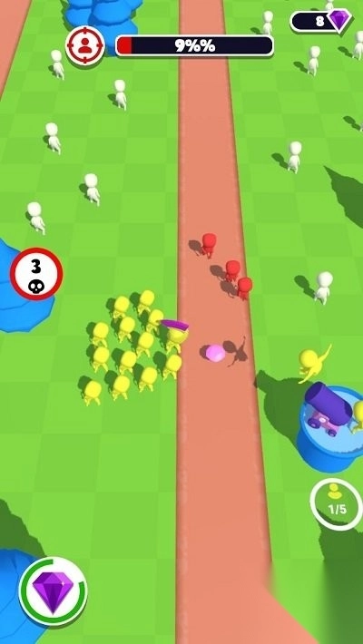 1、每个关卡模式都是不同的游戏体验。在这个关卡中,你需要收集更多的坏蛋来加强你的团队并击倒更多的对手。