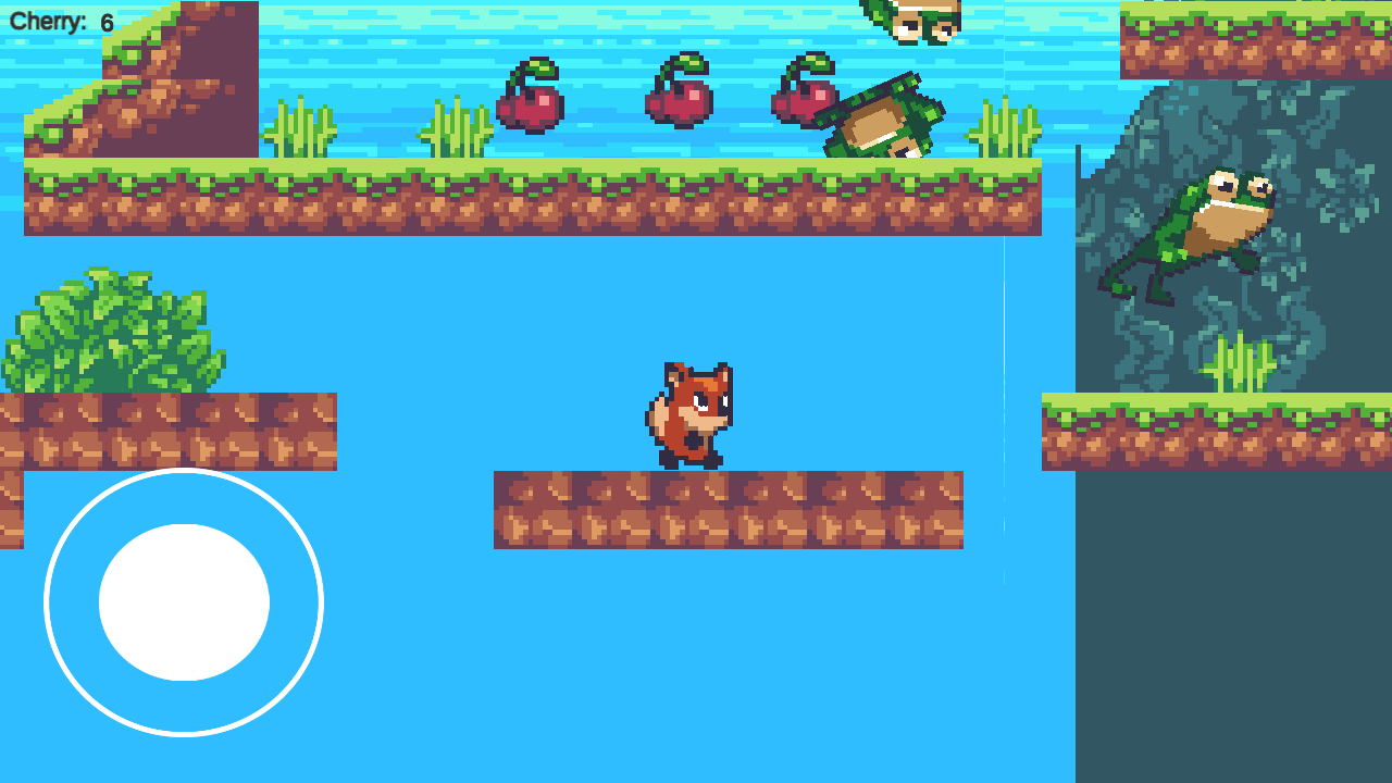 1、舞台上有一只像素风格的小狐狸,需要突破重重障碍。