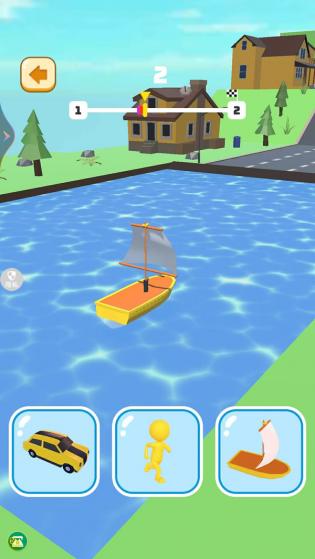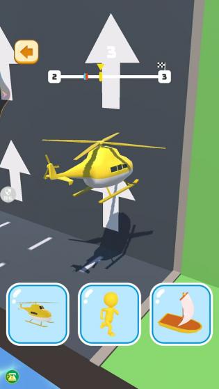 2、不同路段玩家需要根据自身特点切换形态。比如,遇到山坡时,它们会变成直升机飞过去,遇到河流时,它们会变成轮船穿越。