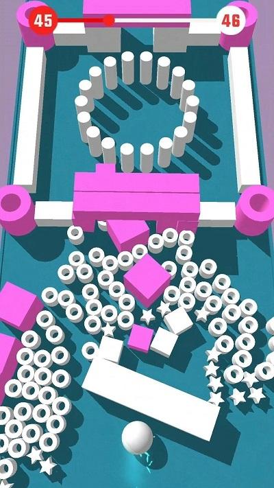 1)刺激闯关:挑战丰富多样的关卡,需要灵活操作小球躲避各种颜色方块,激发玩家的闯关欲望。