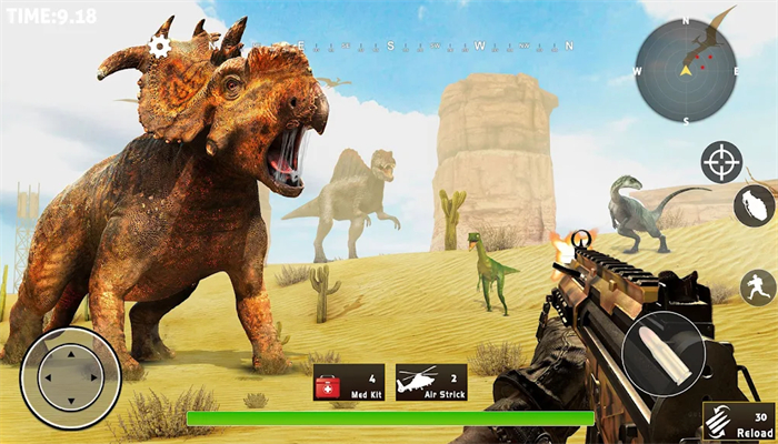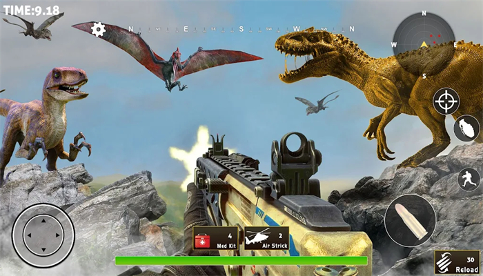 恐龙狩猎枪手猎人是一款高清3D的侏罗纪世界模拟狩猎生存冒险类的游戏,首先玩家需要通过对远古生物的观察,以及凶猛恐龙的不断了解,开启自己的蛮荒世界生存挑战,其次是需要你通过高科技枪械武器的帮助,迅速完成狩猎恐龙的挑战。多种枪械武器会成为你最大的杀手锏,帮助你纵横侏罗纪世界。