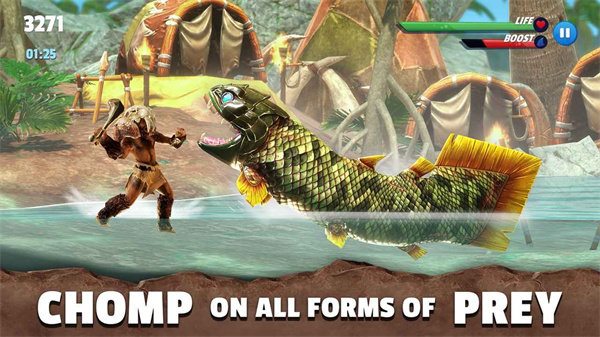 3. 攻击系统:玩家可以使用多种攻击技能,例如跳出水面并攫取猎物、撞击猎物、使用尖锐的牙齿咬猎物等。
