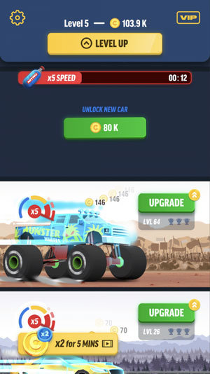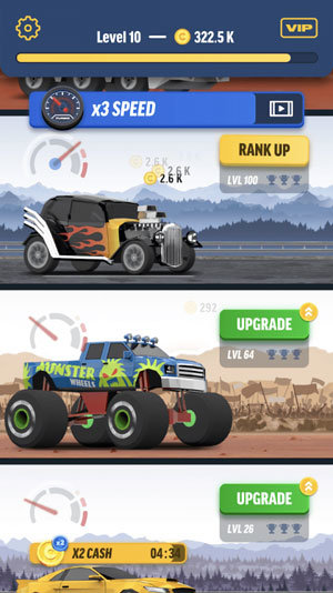 2.球员需要获得金币购买更多设备,即使你不在那里,玩家的车也继续去赚钱;