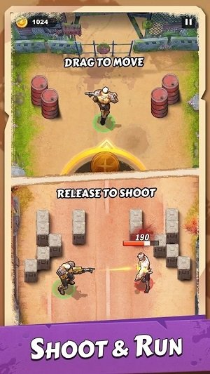 简单有趣的游戏玩法:拖动移动,释放射击!躲避敌人的火力,射杀僵尸;