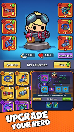 【免费升级】你可以免费升级你的设备。不同的装备升级会带来不同的技能,让玩家更容易通关;