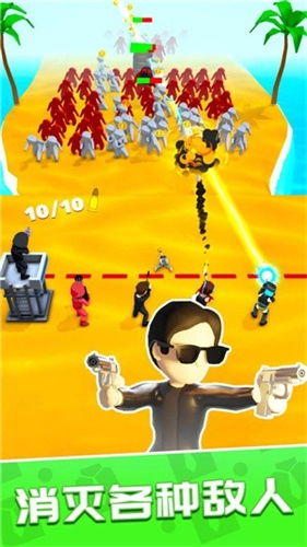 玩家可以尝试过程攻击与远程攻击的结合,单体攻击与群体攻击的结合,以及火焰喷射器、电动枪等特殊兵种,让玩家体验不同兵种射击的快感。